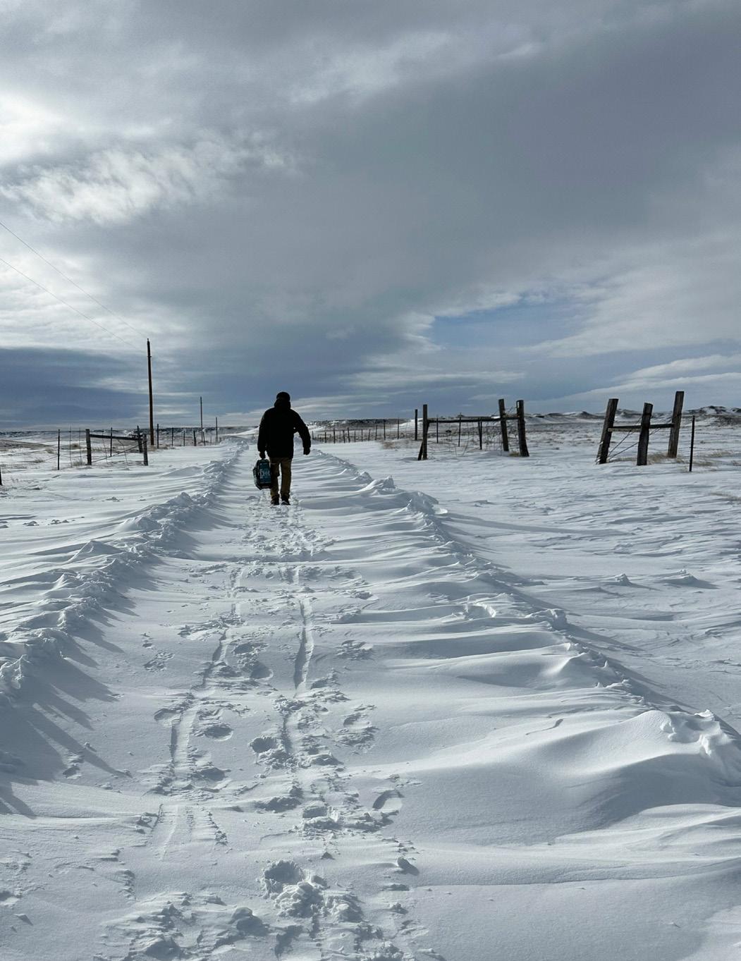 January 2023 and we had been snowed in for days. But we were going on a trip to Southern Utah and finally had to get out. There was no way to drive out so we walked out - on top of the crusted snow.