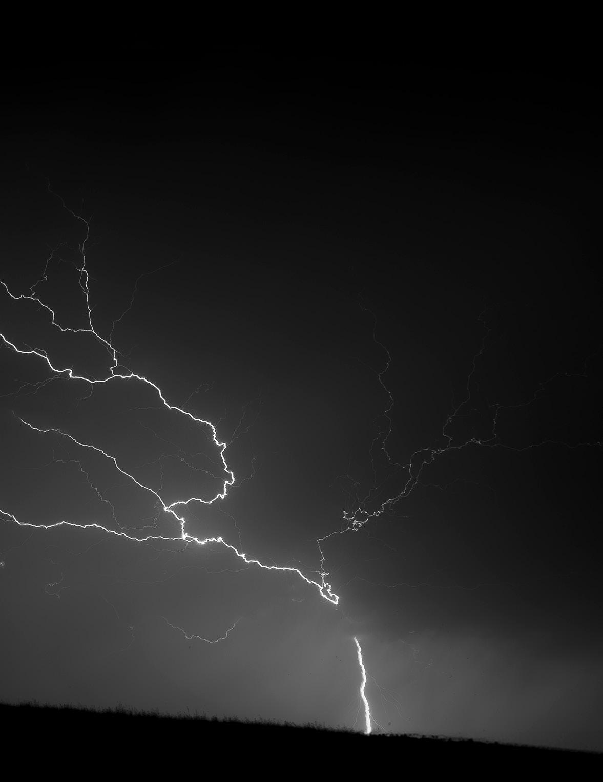 Terri Walford, a Wyrulec member, captured a moment while her power was being restored after a lightning storm. Terri’s home is approximately three miles outside of Lingle. A lightning storm had come through that evening, causing a handful of outages. The transformer at Terri’s house looked like it had been struck by lightning, causing a blown lightning arrestor. These two linemen were on call that night, and around 9 p.m., her house was their last stop.