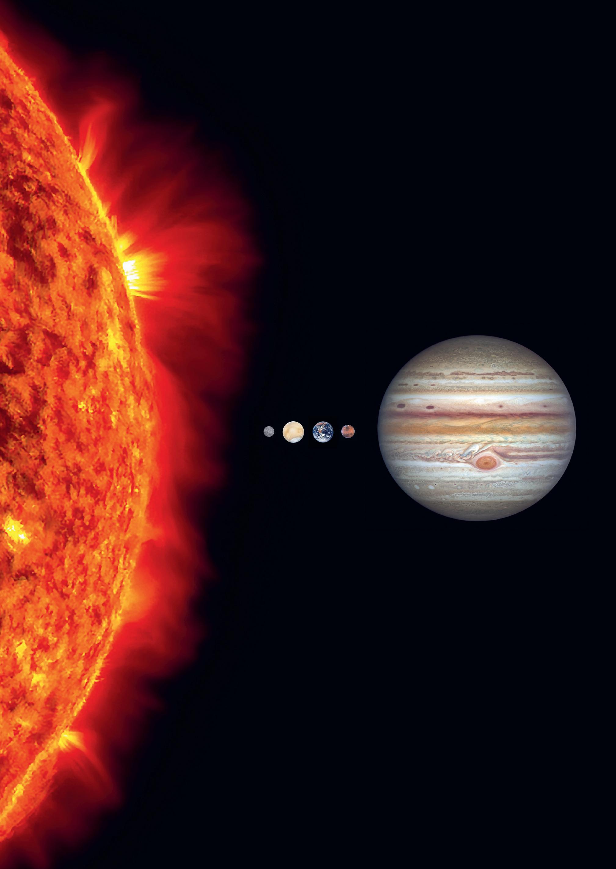 Om solen är en badboll är jorden en ärta en halv fotbollsplan bort.