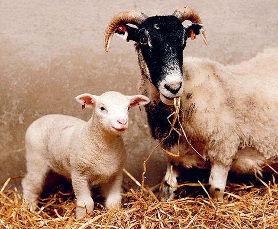Dolly (till vänster) var det första däggdjur som klonades från ett vuxet däggdjur. Fåret med svart ansikte är Dollys surrogatmamma, det vill säga den vars livmoder hon utvecklades i. Fåret som kroppscellen kom från var helt vitt, precis som Dolly.