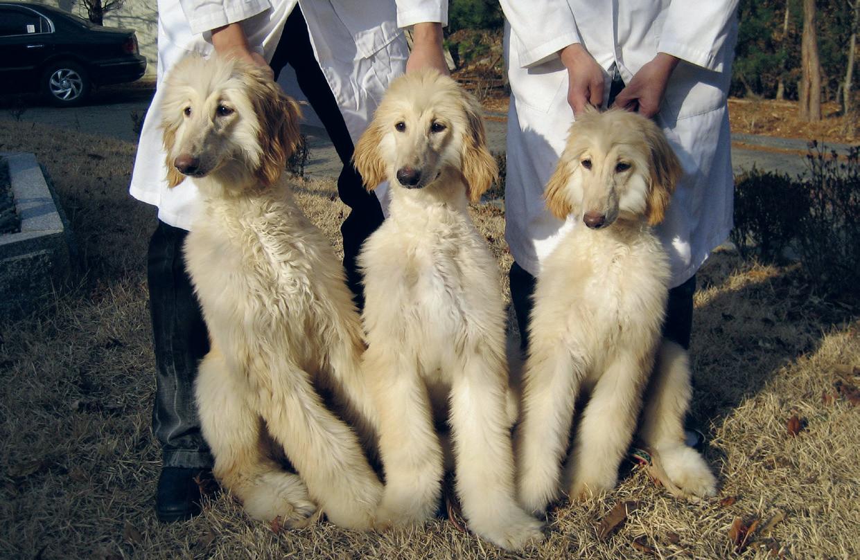 De tre afghanhundarna Bona, Peace och Hope föddes i Sydkorea 2006 och var världens första klonade honhundar.