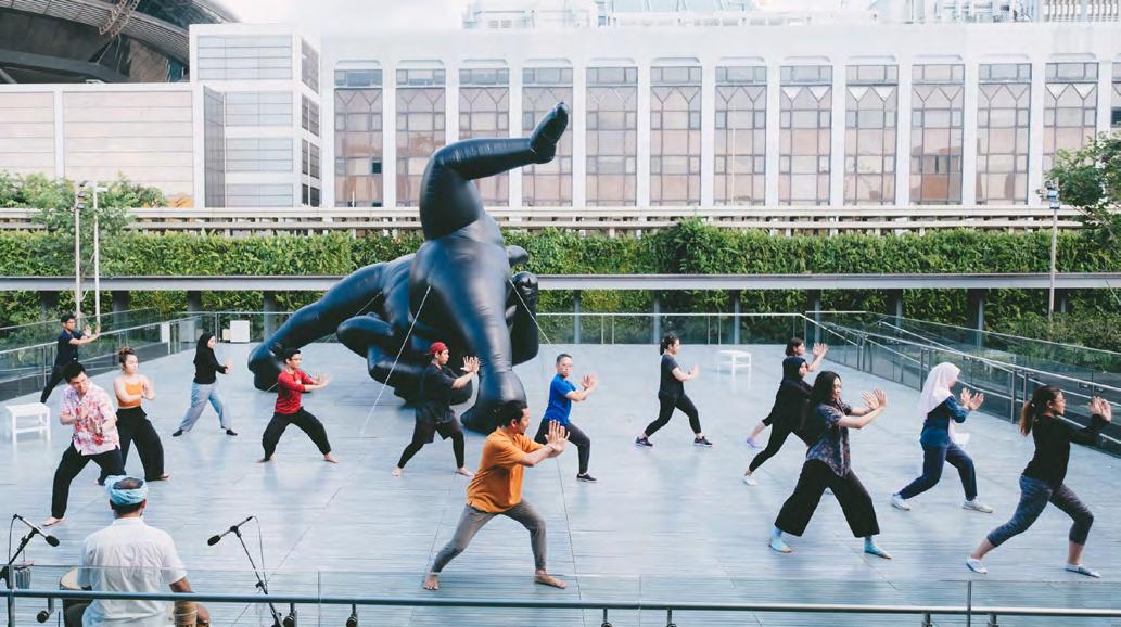 The latest edition of the Ng Teng Fong Roof Garden Commission Series presented Untitled, an inflatable installation by Indian artist Shilpa Gupta. Subverting expectations of the traditional figurative sculpture, this playful yet thought-provoking installation sees two bodies seemingly interlocked in a combative position, but a closer look reveals that they are in fact perched on a single head. Open to a multiplicity of meanings, Gupta’s work can be read from the perspective of geopolitical conflicts and social struggles, or the dualities that we experience within our own selves in everyday life.