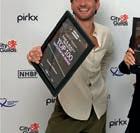 Awards presenter Craig Doyle with Fergal and NHBF president Amanda Lodge-Stewart