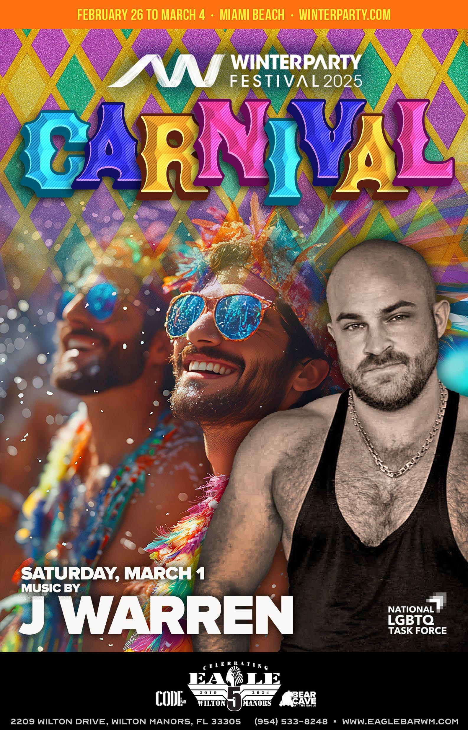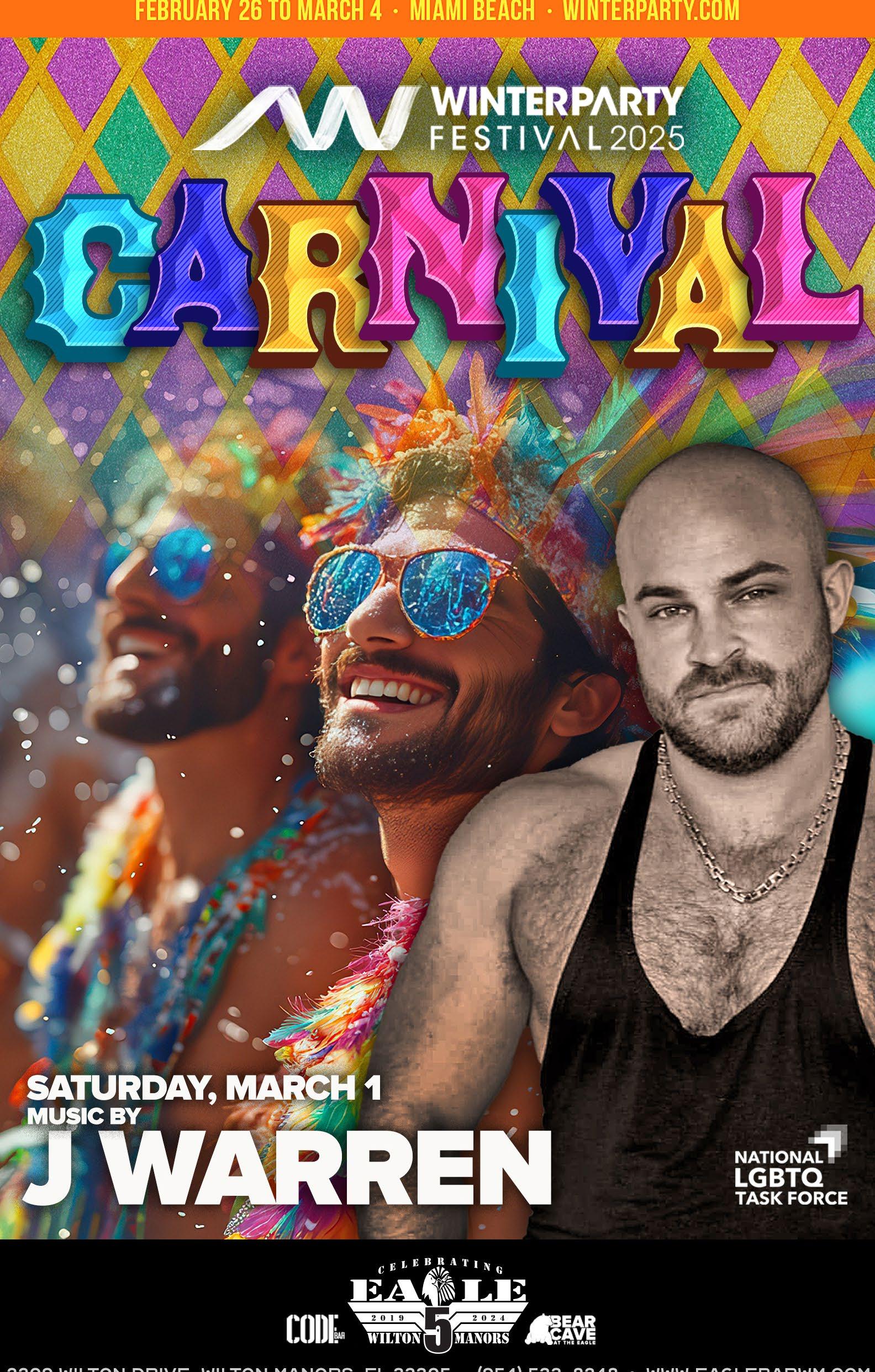 Get ready to gear up and dance off your inhibitions at Carnival! Winter Party’s exclusive leather event returns to The Eagle Wilton Manors, our favorite leather bar. Tear up the dance floor to the sounds of DJ J Warren. No stranger to Winter Party, J Warren draws his inspiration from a wide array of sounds, high energy big room uplifting vocals and transcending melodies. With him at the helm, you’re guaranteed to work up a sweat on the dance floor. Get there early to secure your entry as there are no advance tickets for this event.