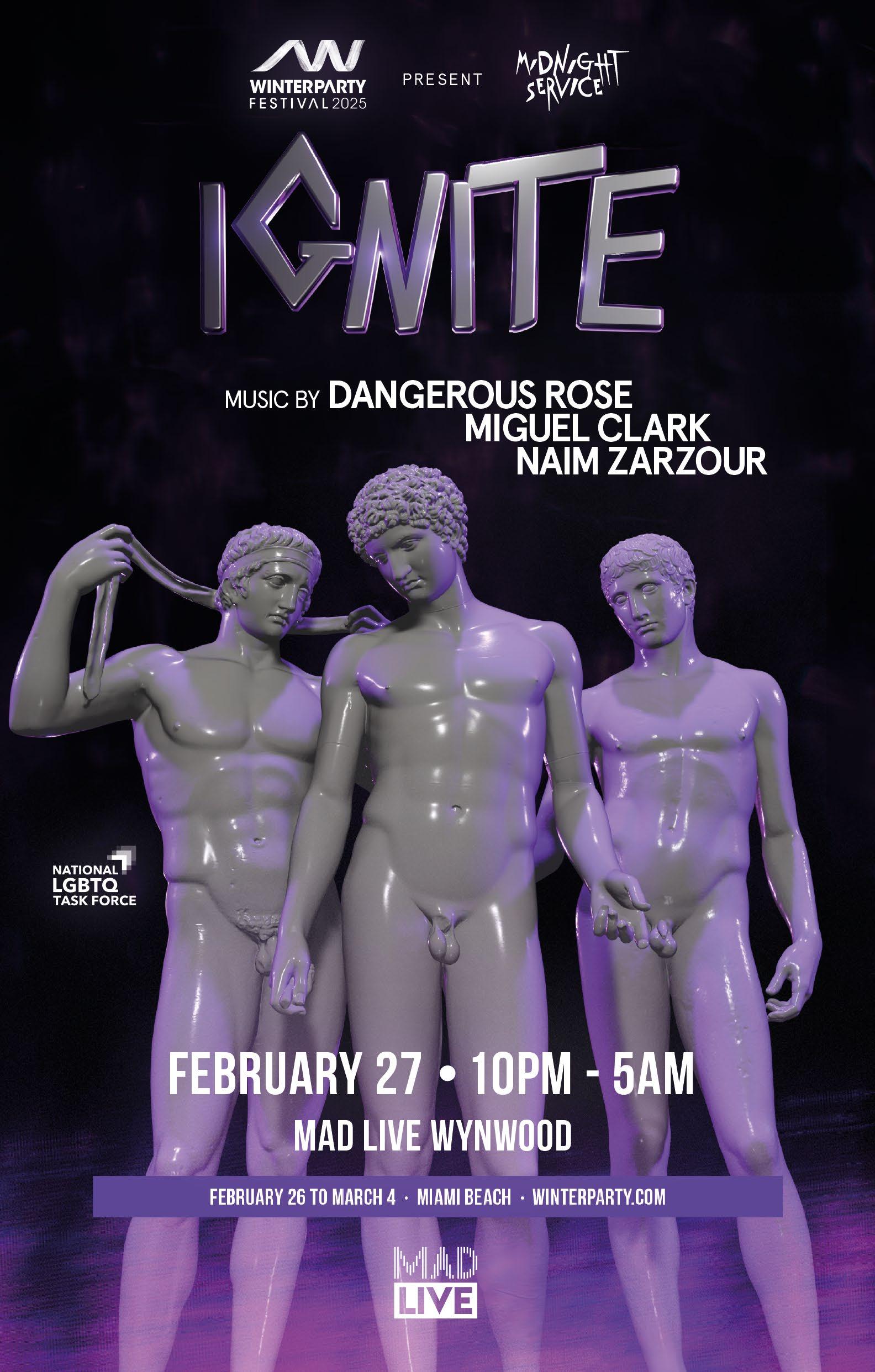 Start your Winter Party Festival weekend at Ignite, our Thursday Night dance event, as we head to one of Miami’s hottest dance spots, MAD Live! This year we’ve partnered with Midnight Service to bring together a diverse mix of talented DJs: Miguel Clark, Naim Zarzour and Dangerous Rose. Together, they’ll ignite the dance floor and set the perfect tone for an incredible weekend ahead. From high-energy beats to global sounds, their performances will keep you moving all night long.