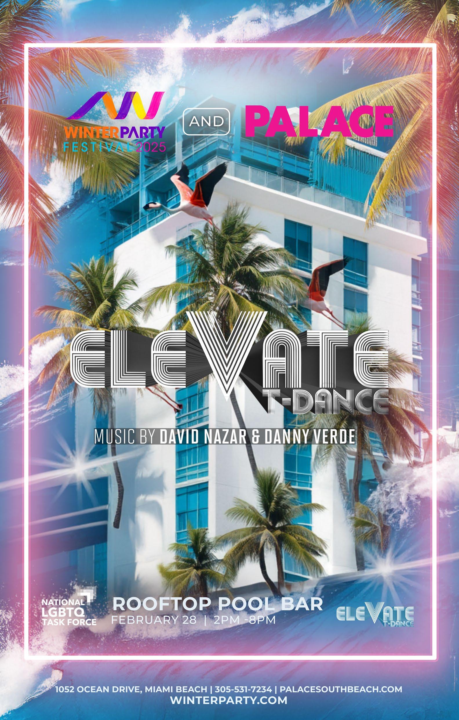 Bathe in the sun and cool off with a splash at Elevate T-Dance! It’s the perfect way to spend your afternoon and gear up for an action-packed weekend as Winter Party Festival takes over the rooftop pool bar at Palace. You’ll be uplifted with the incredible talents of DJs David Nazar and Danny Verde as you dance into the sunset with the incredible views of South Beach as the backdrop. VIP passholders will receive access to an exclusive VIP bar area with complimentary vodka cocktails from 4 PM - 6 PM.