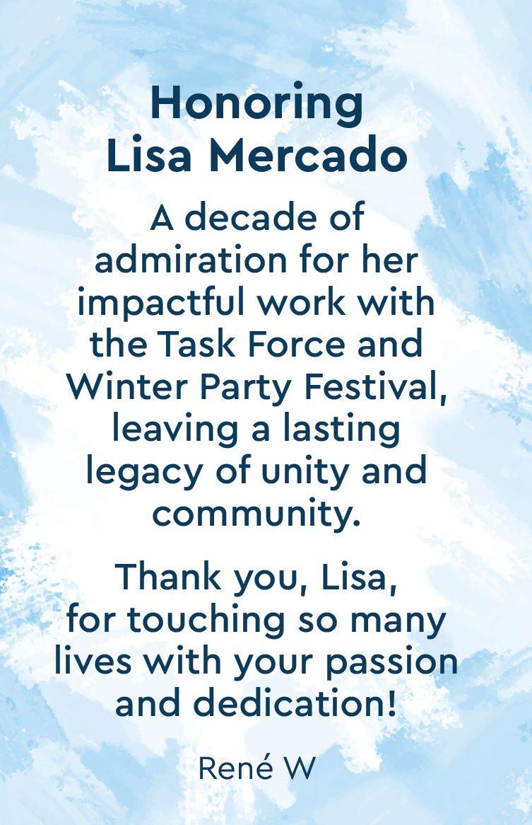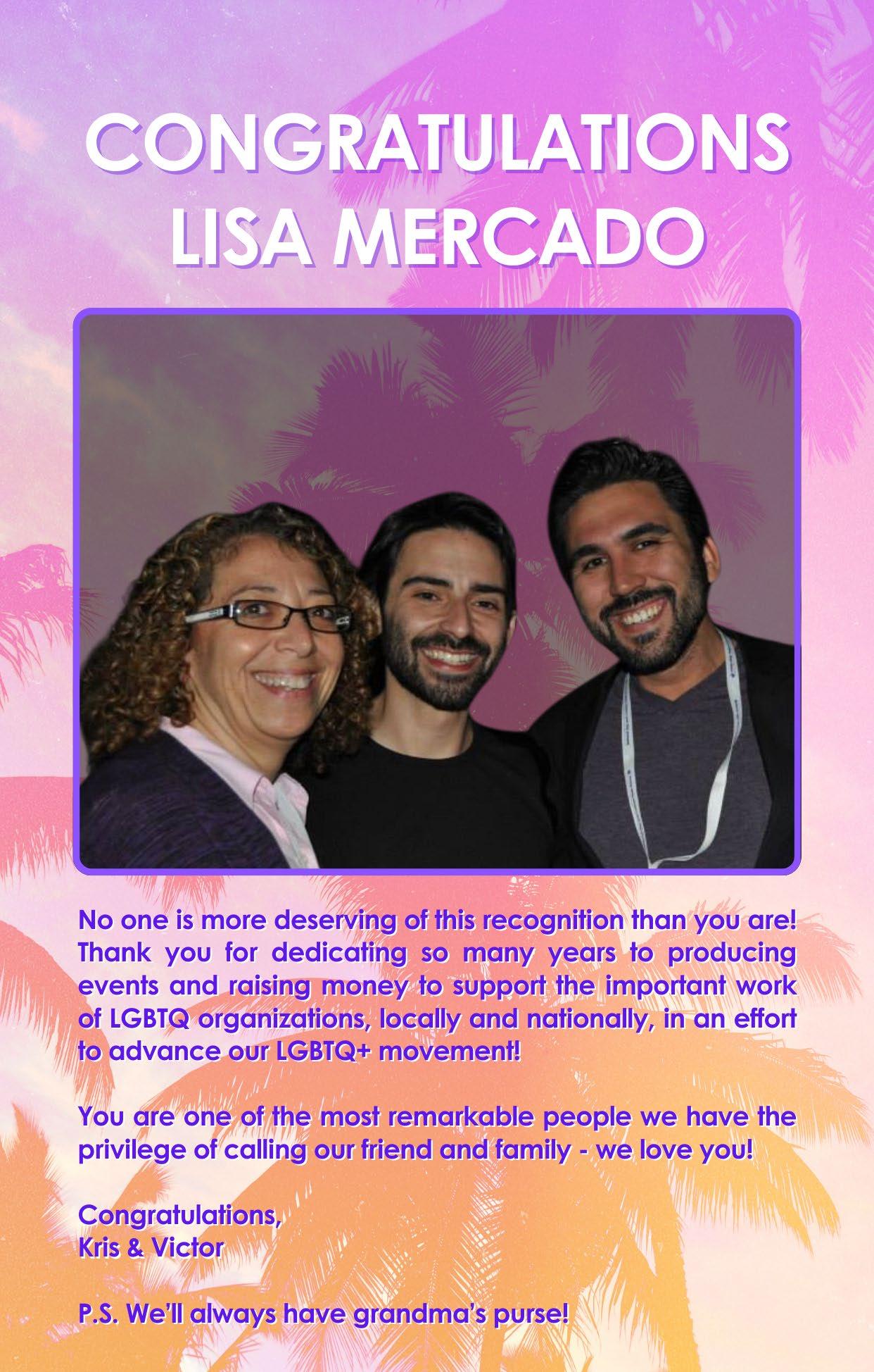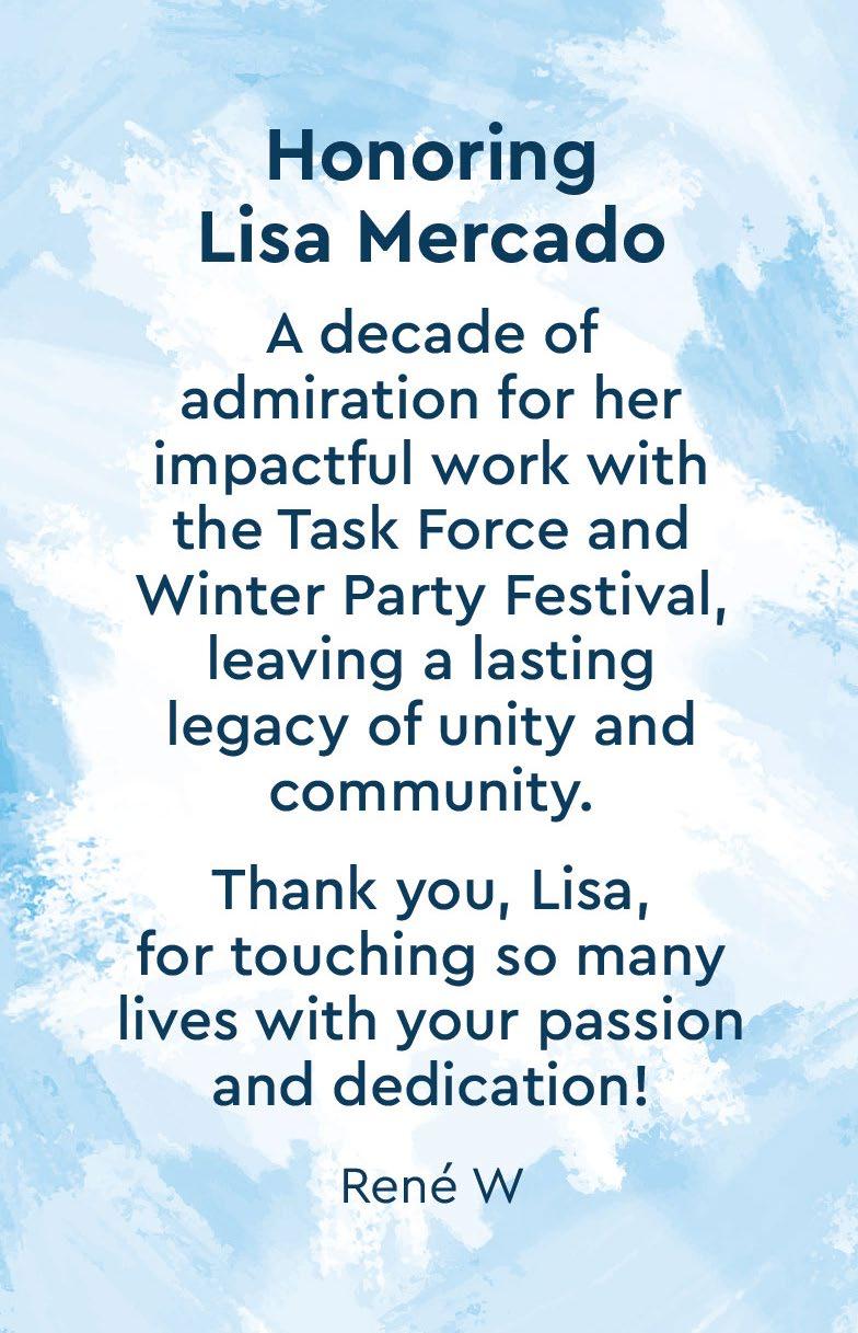 Lisa Mercado is one of the unsung heroes who played an enormous role in building the National LGBTQ Task Force’s Miami fundraisers (Winter Party Festival and the Task Force Gala) into the legendary celebrations that they are today. We are thrilled to recognize her contributions to the Task Force and to the LGBTQ community at the 2025 Winter Party VIP Cocktail Reception.
