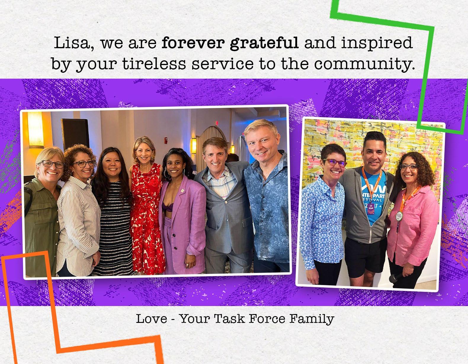 Lisa became a Task Force staff member in 2010 and worked tirelessly on both Miami events for nearly a decade. During her tenure, she developed and implemented systems and practices that were integral in growing both events. Her incredible work ethic and her appreciation for and partnership with our volunteer leadership played a crucial role in the growth of both events.