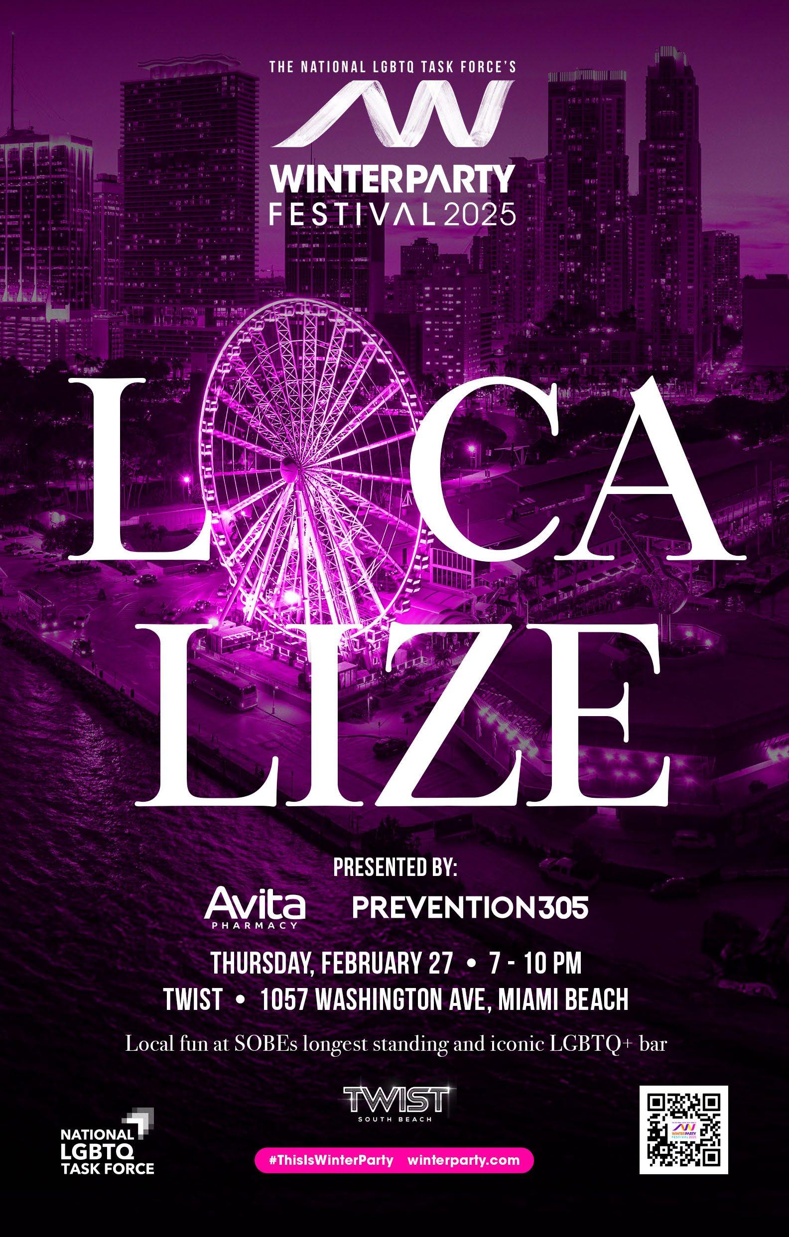 Our friends at Avita Pharmacy and Prevention 305 present our popular community-building and networking event, LOCALIZE, where guests from around the world enjoy drink specials, raffle giveaways, beautiful people and the fabulous energy of our surprise entertainment. This event also features an open conversation about sexual health, the pros and cons of PrEP and other safer sex practices as an effective way to prevent and stop the spread of HIV, as well as how living with HIV is important to talk about openly. Come join us for an evening of conversations, laughter, dancing, and fun entertainment where all members of the community are welcome.