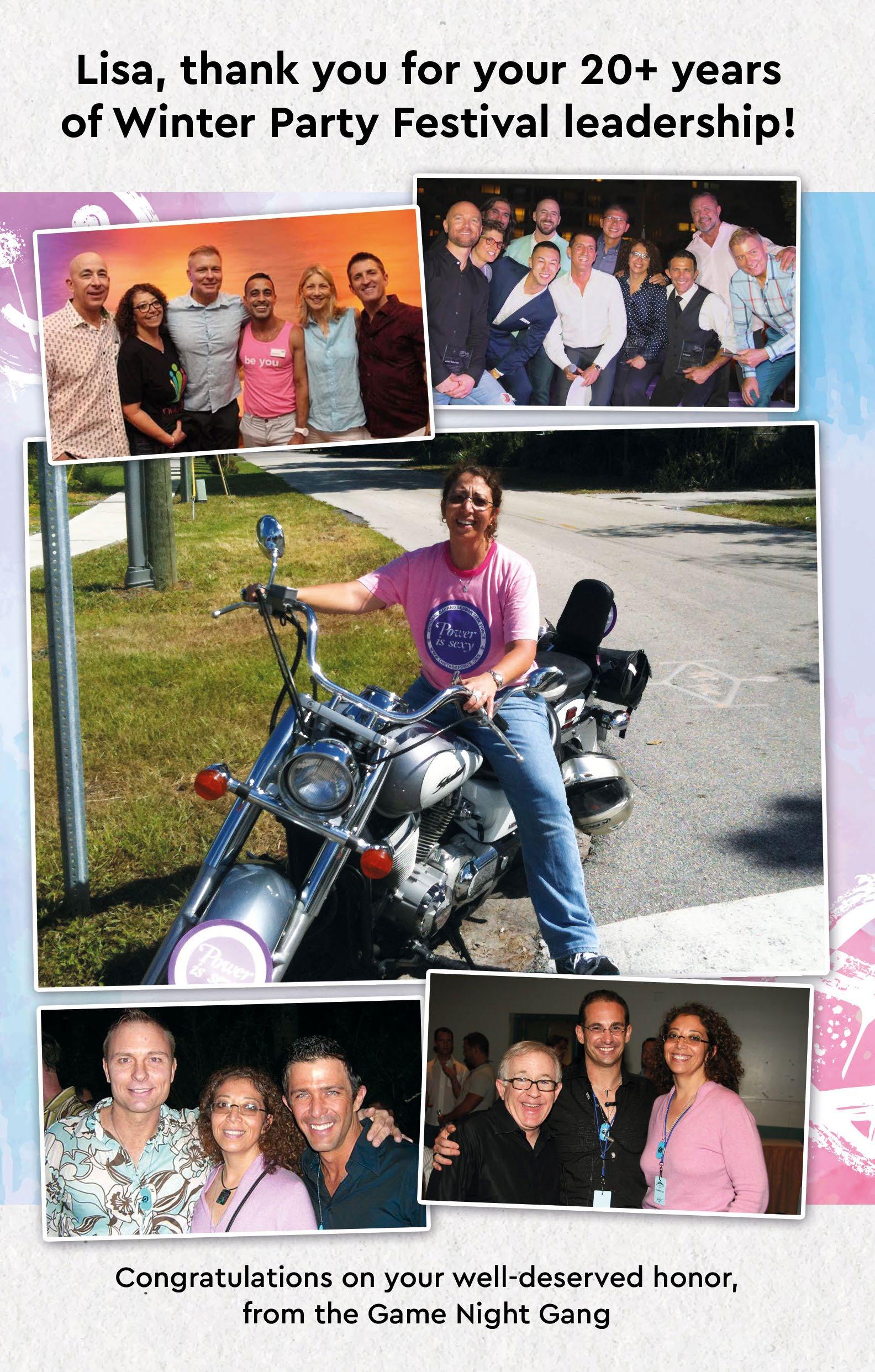 Lisa’s association with the organization began when she volunteered to help with the 2005 Beach Party, the first one produced by the Task Force. She joined the 2006 festival committee as the Director of Women’s Programming, launching several events geared toward women, and organized the LGBT Family Picnic. She served as Winter Party Festival Co-chair for the 2007 and 2008 Festivals, becoming the first (and only to date) woman to chair the Festival.