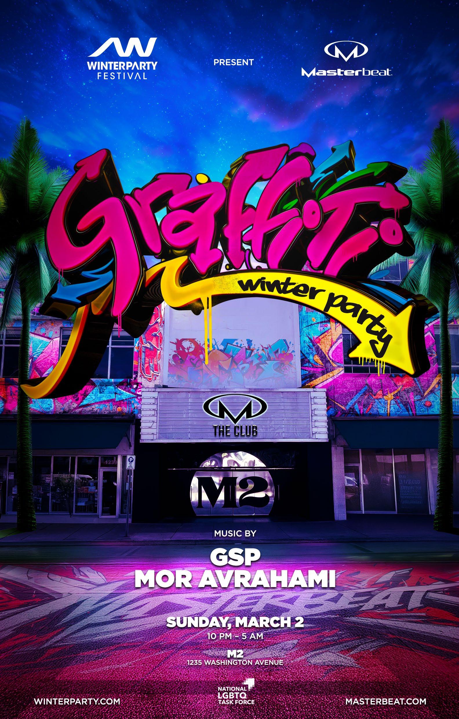 The line between art and life blurred, we converge in the power of dance, music and art as Winter Party Festival and Masterbeat present GRAFFITTI: a colorful explosion of community and artistic exploration as our dance revolution continues into the night at Miami Beach’s legendary M2 Nightclub. The air will crackle with energy as we move our bodies, becoming washed with vibrant hues and pulsating beats. The dance floor, once a blank canvas, is now filled with life and transformed into a kaleidoscope of colors and patterns as renowned DJs GSP and Mor Avrahmi blend dynamic beats with the energy of Winter Party Festival! This event offers both GA and VIP ticketing options. VIP tickets include priority entry and access to our VIP area with a cash bar.