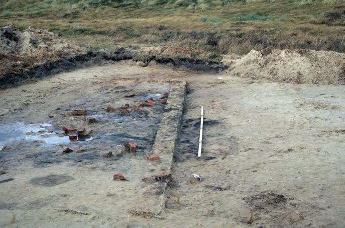 Under muldlaget lå et sterilt lag flyvesand, og vi var lige ved at opgive, men så dukkede der mursten og keramik op. Vi havde fundet en husstomt cirka otte meter lang og fire meter bred. Huset har haft et muret ildsted af munkesten, og små stumper rudeglas viste, at det havde haft vinduer, væggene var formentlig af soltørrede klæglersten, som der lå plamager af.