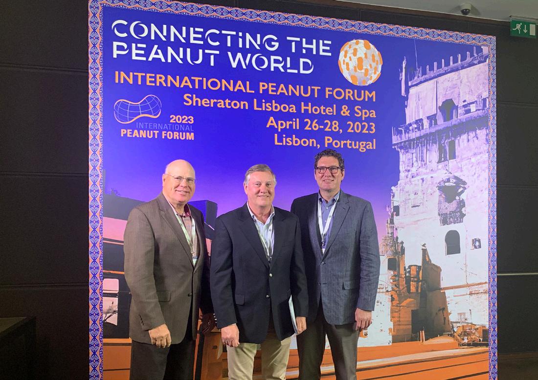 (L-R): Greg Baltz, NPB chairman, Bob Parker, former NPB president and CEO, and Lepicier at the International Peanut Forum in 2023
