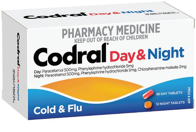 every day He Available at your local 8 FROM FEVER TO LITTLE ACHIEVER * ALWAYS READ THE LABEL AND FOLLOW THE DIRECTIONS FOR USE. INCORRECT USE COULD BE HARMFUL. Trade marks owned or licensed by Haleon © 2024 Haleon or licensor. PM-AU-PAN-24-00011 *Combined with sufficient time to rest and recover. Liquid Fast Pain Relief ALWAYS READ THE LABEL AND FOLLOW THE DIRECTIONS FOR USE. INCORRECT USE COULD BE HARMFUL. © 2024 Haleon or its licensor. PM-AU-PAN-24-00022. Members $835 Members $2939 Members $1869 Members $2299 Members $999 Members $1539 Members $949 Members $1269 Codral Cold & Flu Day & Night Tablets 48 Retail Price* $27.99 Difflam Plus Lozenge 16 Assorted Variants Retail Price* $11.49 ea Maxalt Migraine Relief Rizatriptan 5mg Wafer 2 Pack Retail Price* $15.35 Pharmacy Choice Cold & Flu Day & Night PE 24 Tablets Retail Price* $9.95 Sambucol Immune Defence Immuno Forte 250mL Retail Price* $34.99 Robitussin Dry Cough Forte 200mL Retail Price* $22.65 Pharmacy Choice Cold & Flu Tablets 24 Retail Price* $11.95 Demazin Kids 6+ Cold Relief Colour Free Syrup or Blue Syrup 200mL Retail Price* $19.25 ea Sudafed Nasal Spray Pump 20mL Retail Price* $13.49 Nasal Spray Refill 20mL Retail Price* $10.99 Flo Rapid Relief Nasal Spray 15mL Retail Price* $14.49 ea Members $1145 Members $1115 $899 ea ea ea Healthcare