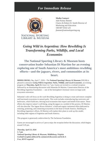 Press Release: Going Wild in Argentina at NSLM