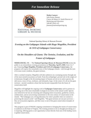 Press Release: Galapagos Conservancy with Hugo Mogollón (President & CEO)