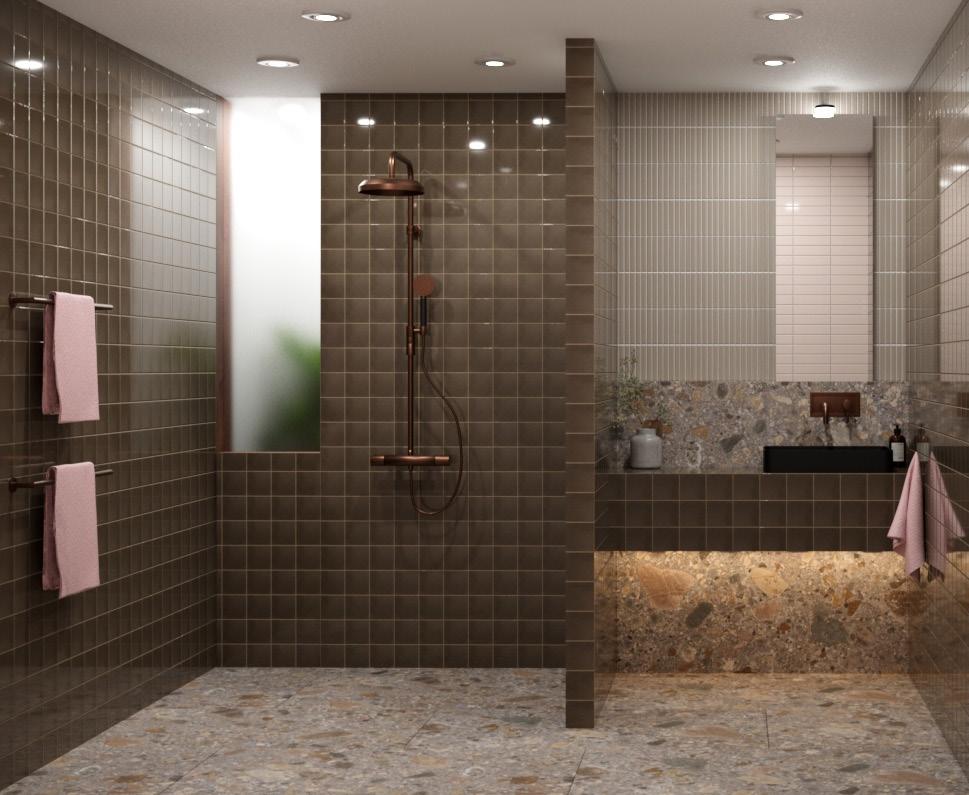 Working with National Tiles was seamless. Their range allowed me to explore how a single tile can feel entirely different depending on scale, layout and orientation. For example, in the