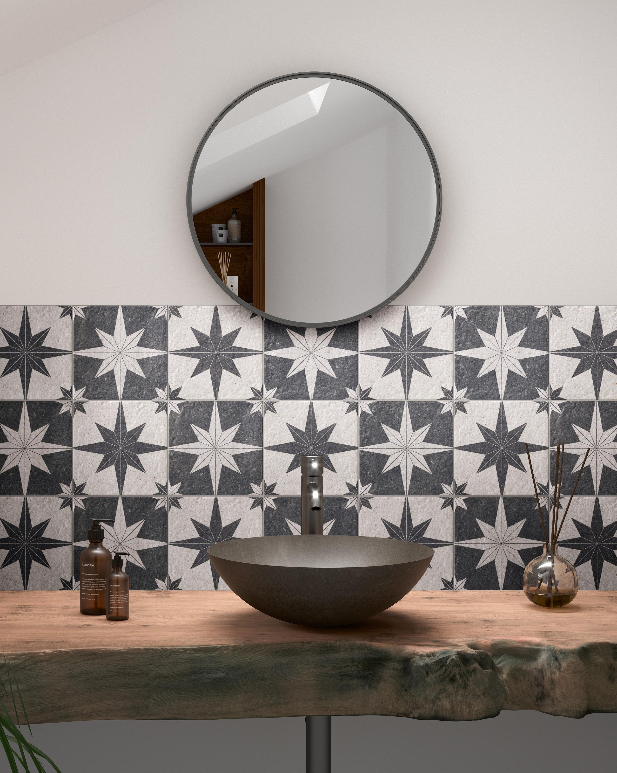 Wall Tile: Bali StoneWhite and Lava Compass 200x200mm