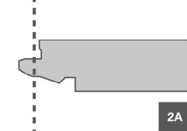 Start installing the planks in the left-hand corner, with the tongue side facing the wall. Begin the first row with a full plank. Saw off the tongue on both the long and short sides (2A), then place the plank with the sawn-off edges against the wall.