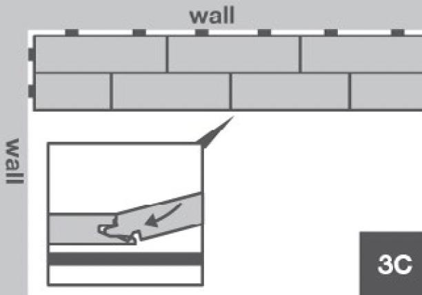 Gently move the plank up and down while applying forward pressure. The planks will click into place automatically (3C). Repeat these steps for the next three to four planks, then begin the third row.