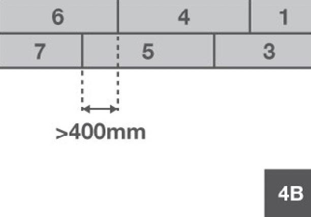 Always ensure that the end joints are randomly staggered by at least 400mm (4B)