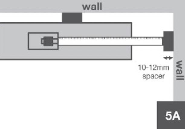 Move back to the first row and continue the installation. Place the final plank of the row face down. Ensure the distance to the wall is 10–12mm (5A). Mark where the plank needs to be cut. Place the plank decorative side up on the work surface and cut it to size using a utility knife and the ‘score and snap’ method.