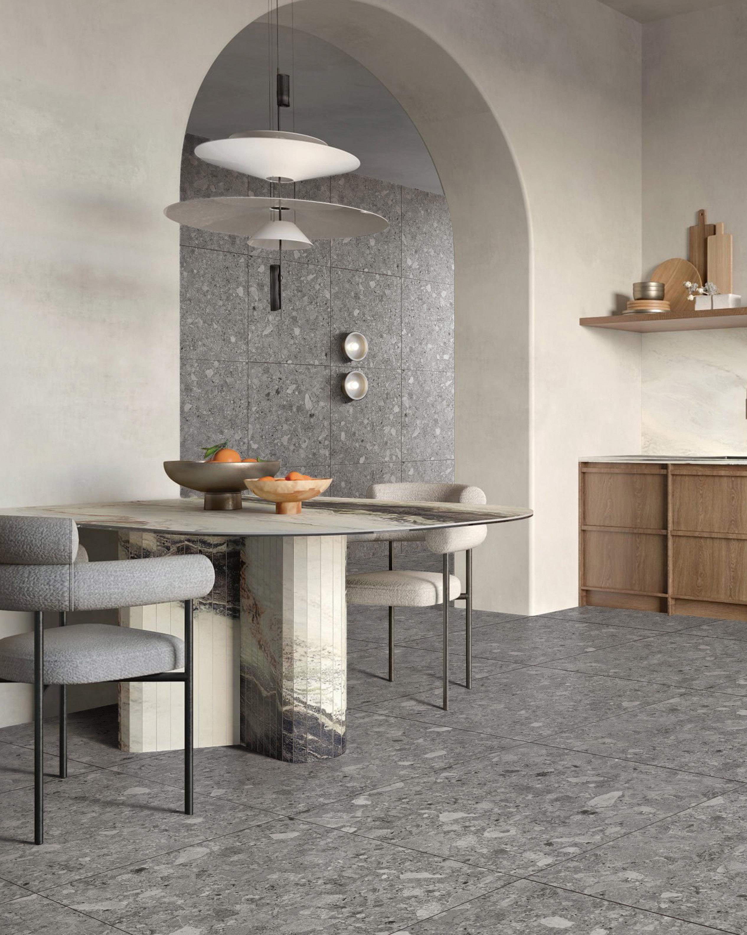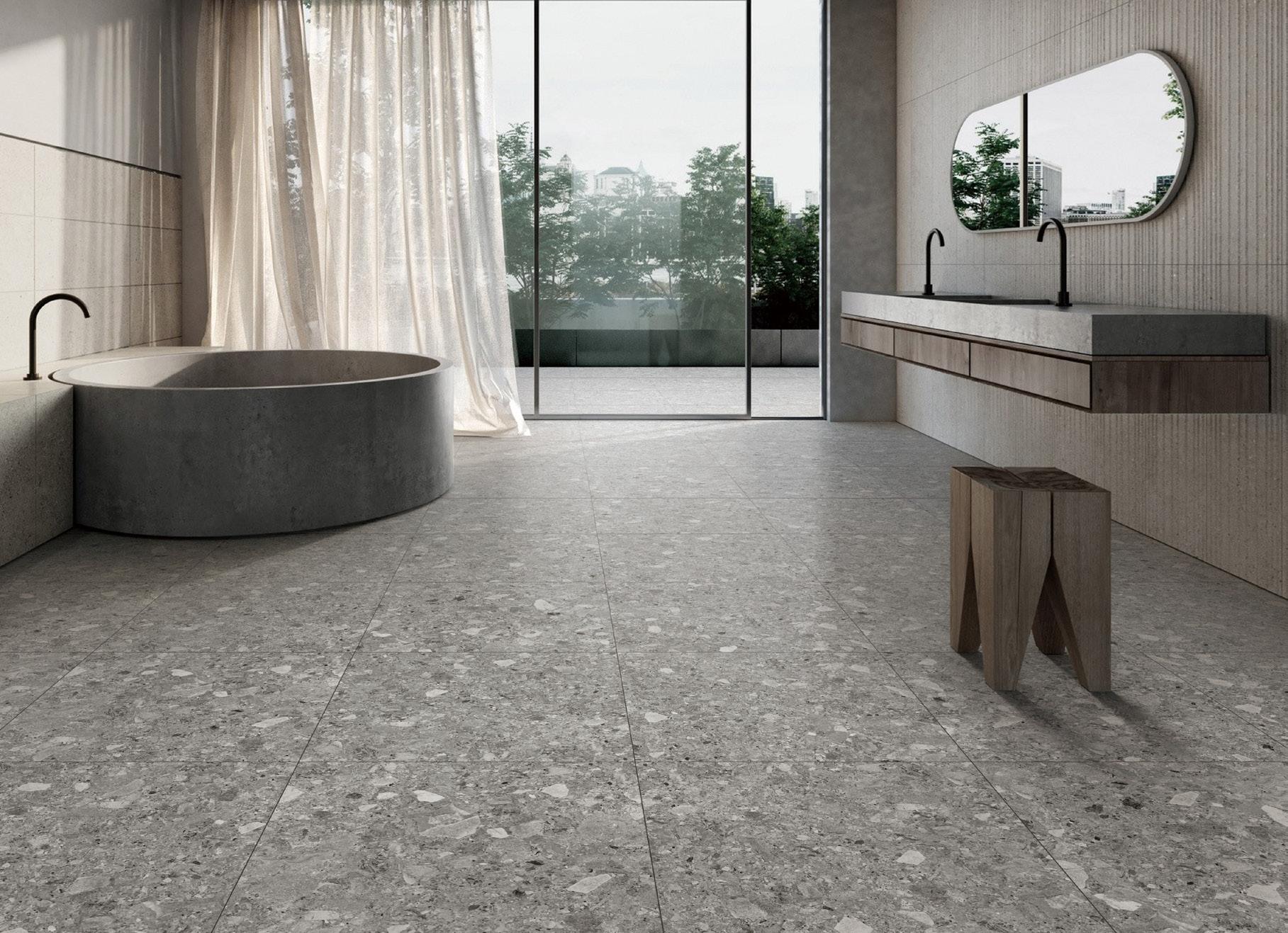 The natural conglomerate look of this rock is accurately reproduced in our Ceppo range that features broken mineral fragments cemented together in a fine-grained base. Visually authentic, and sustainable, this porcelain tile allows homeowners and designers to showcase this stunning stone-effect indoors and then carry it seamlessly outside.