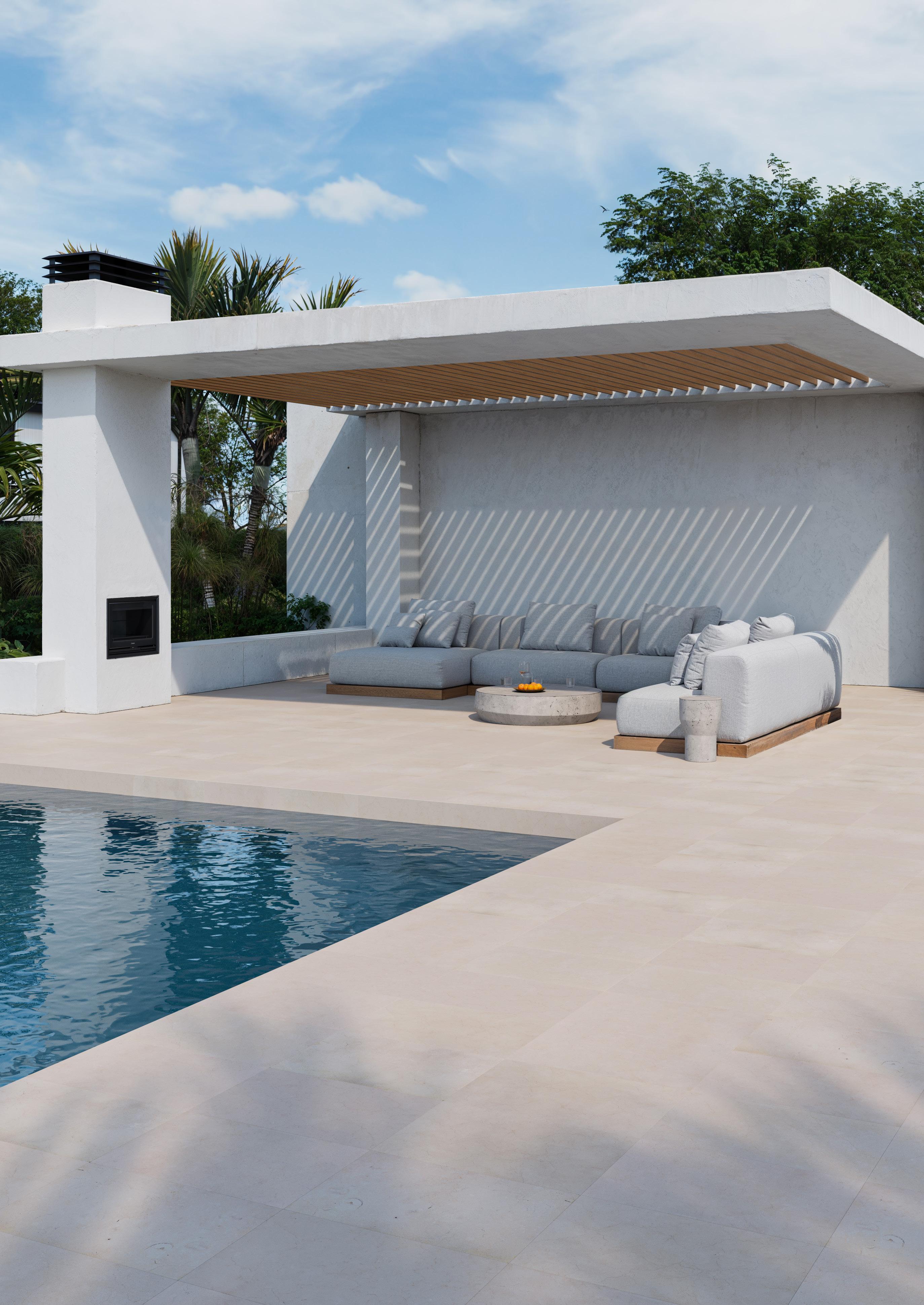 Naturally durable and suited to external environments, this limestone brings a calm and grounded aesthetic that sits effortlessly within landscapes and open-air spaces. Its soft and timeless appeal bring a sense of understated luxury to patios, pool surrounds, and alfresco areas – spaces that are made to be lived in.