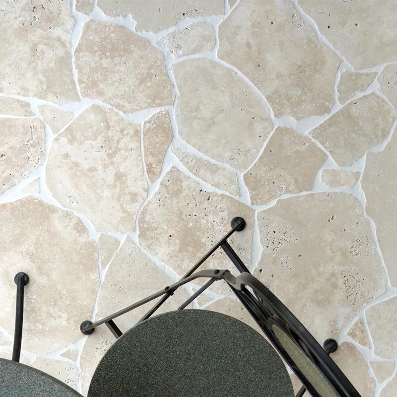 Travertine Crazy Pave brings a distinctly handcrafted aesthetic to your design. Combining the unique character of stone with irregular shapes and naturally occurring variations, it creates surfaces with movement, texture, and a contemporary edge. Each layout is unique, celebrating the imperfect beauty of stone and the artistry of whatever placement you choose.