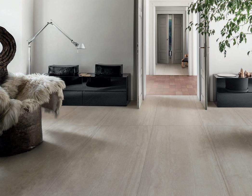 Now this timeless material has been faithfully reproduced and refreshed in technical porcelain in the Italian-manufactured Mystone Travertino collection. This richly-detailed range offers the restful neutral tones and delicate surface figuring of the natural stone with the low maintenance, strength, and unsurpassed wear resistance one expects from the finest porcelain stoneware tiles.