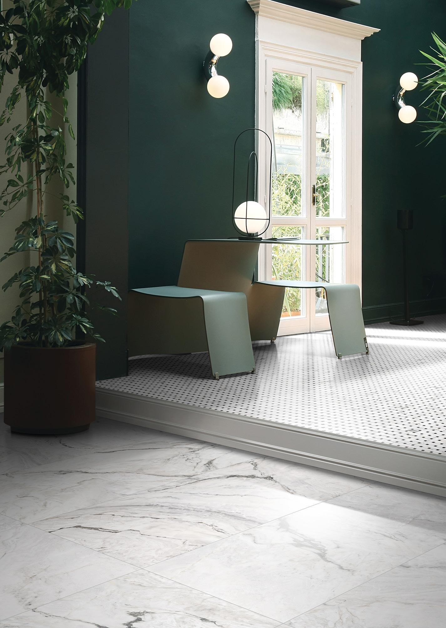 The satin finish represents true luxury and needs to be touched to be appreciated. The tile feels soft and delicate under foot.