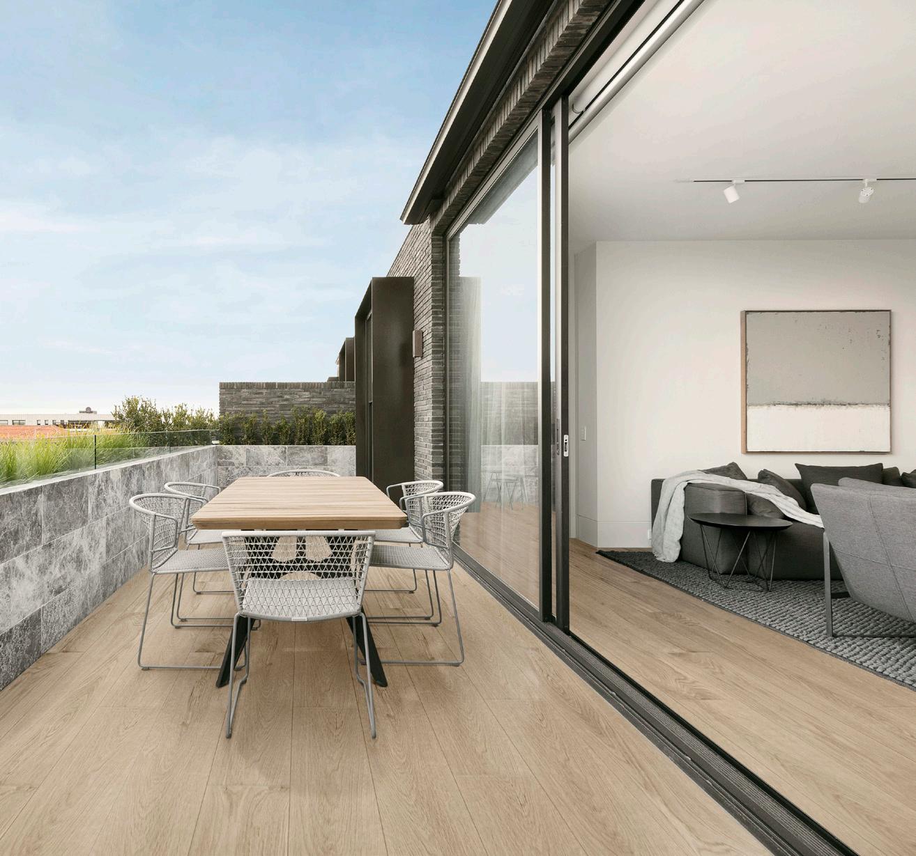 With natural hues, emphasised grain patterns and a high degree of shade variation, the Spanish-made Woodstar range captures the rich warmth and striking visual appeal of authentic timber floors in a porcelain tile. Boasting an in-and-out finish that enables an uninterrupted surface from the indoors to the outside, Woodstar will add timeless, organic aesthetic to any space.