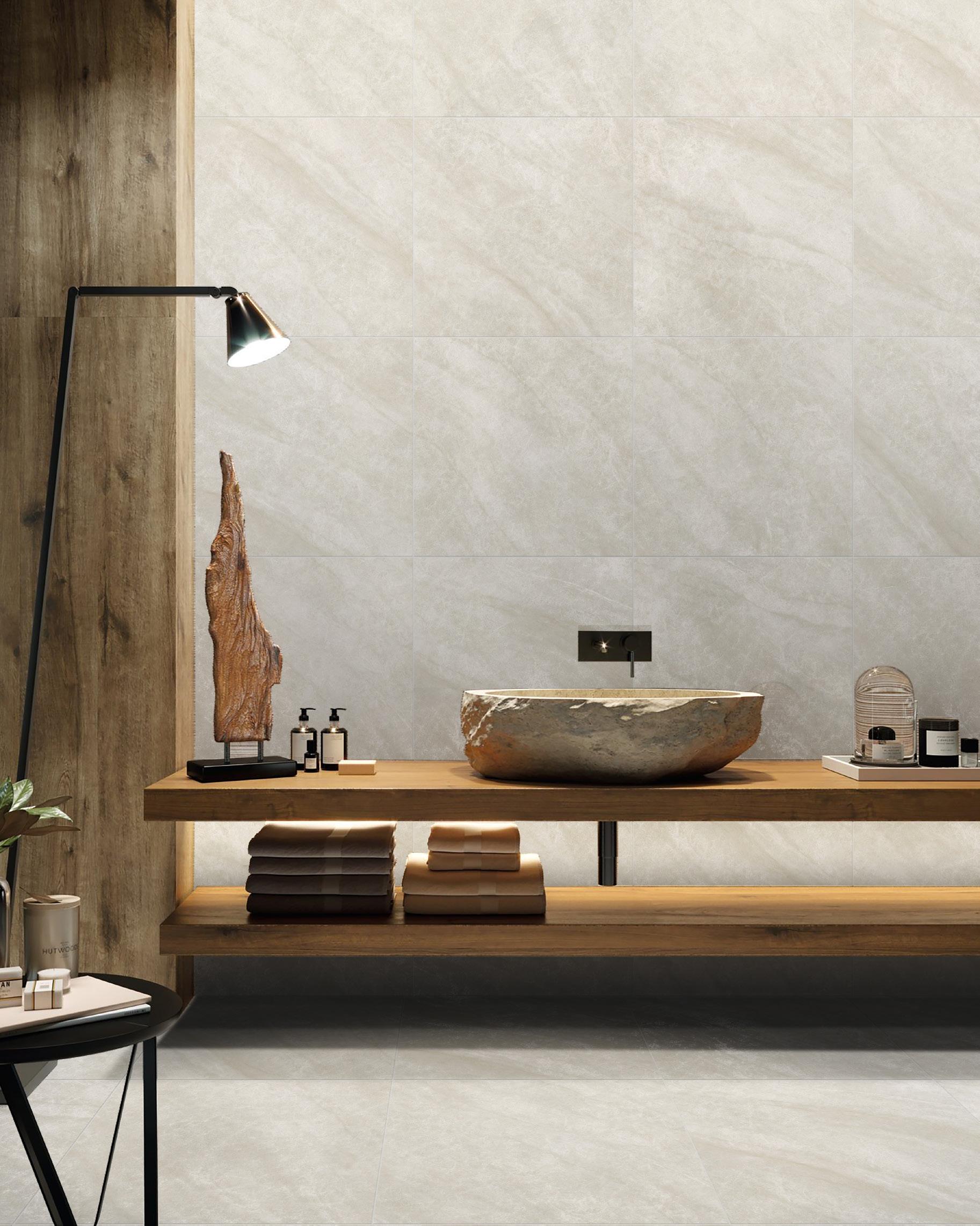 The Taj Mahal collection is available in two colourways – Oyster and Imperial – both enhanced by a subtle layer of silver veining. Suitable for use as floor and wall tiles, they are cut with rectified edges and produced with a friendly in-out finish for commercial spaces, or a polished finish for the elegance of your home’s interior.