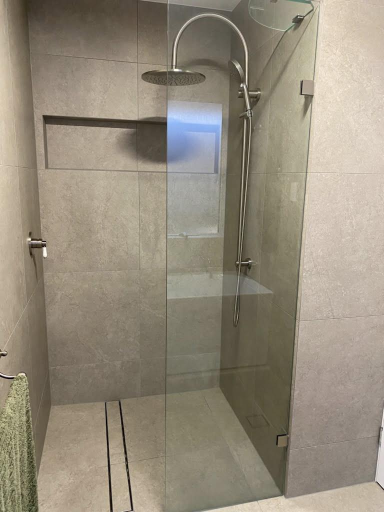 Have a look at this stunning bathroom from one of his jobs with our first-class Stone Union Taupe In-Out tiles in the shower and Whoosh White Matt tiles as a signature splashback!