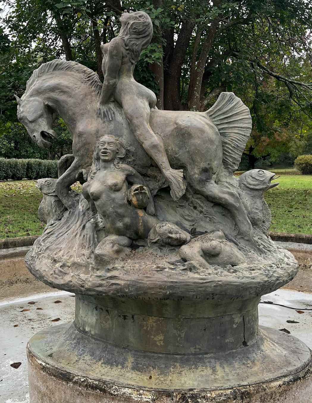 From left to right: The Sea Horse Fountain at Norman Lindsay Gallery before and after restoration. (Photography by International Conservation Services)