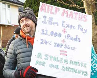 At schools across the West Midlands, educators employed at the Arthur Terry Learning Partnership forced the multi-academy trust (MAT) to drop plans to cut more than 100 jobs. The MAT is millions of pounds in debt after years of mismanagement, and has twice been bailed out by the Department for Education. Rightly, members refused to pay the price for their employer’s poor spending decisions. Read about their victory on page 8.