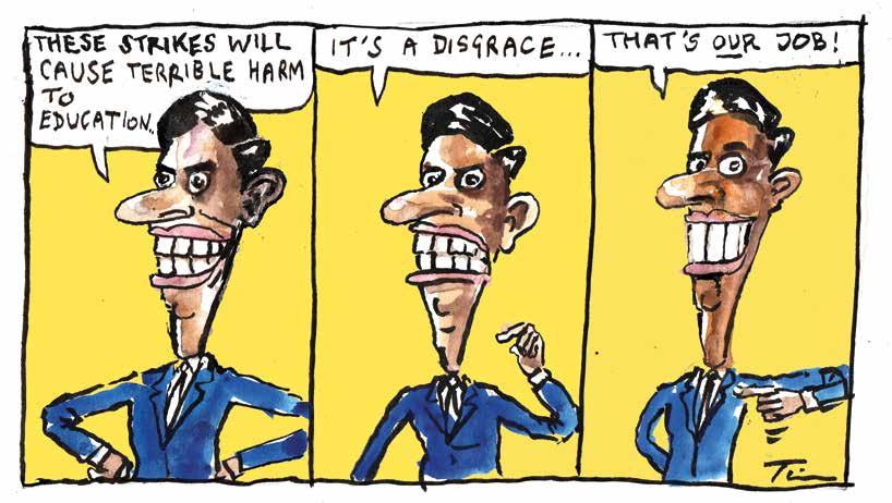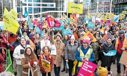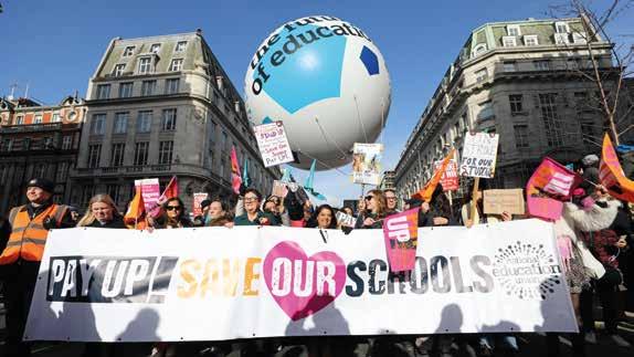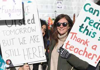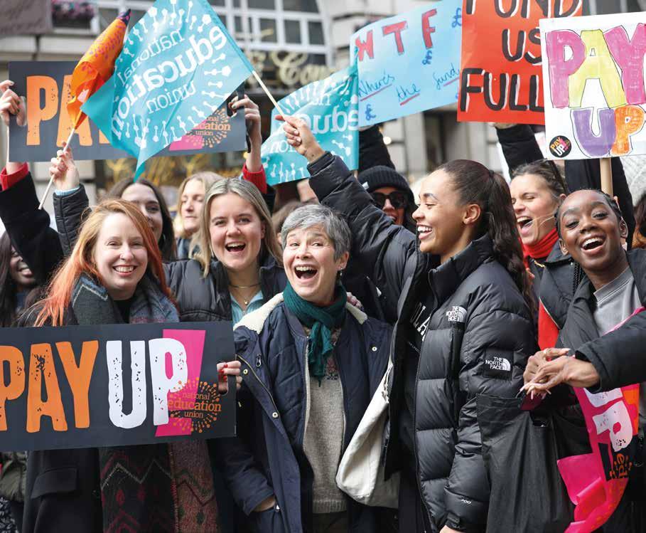 And what creativity. Homemade placards and signs brought wry smiles to passers-by as teachers showed their originality and innovation. In this issue we report from the strikes on pages 6-9 with interviews and photos from Birmingham to Cardiff.