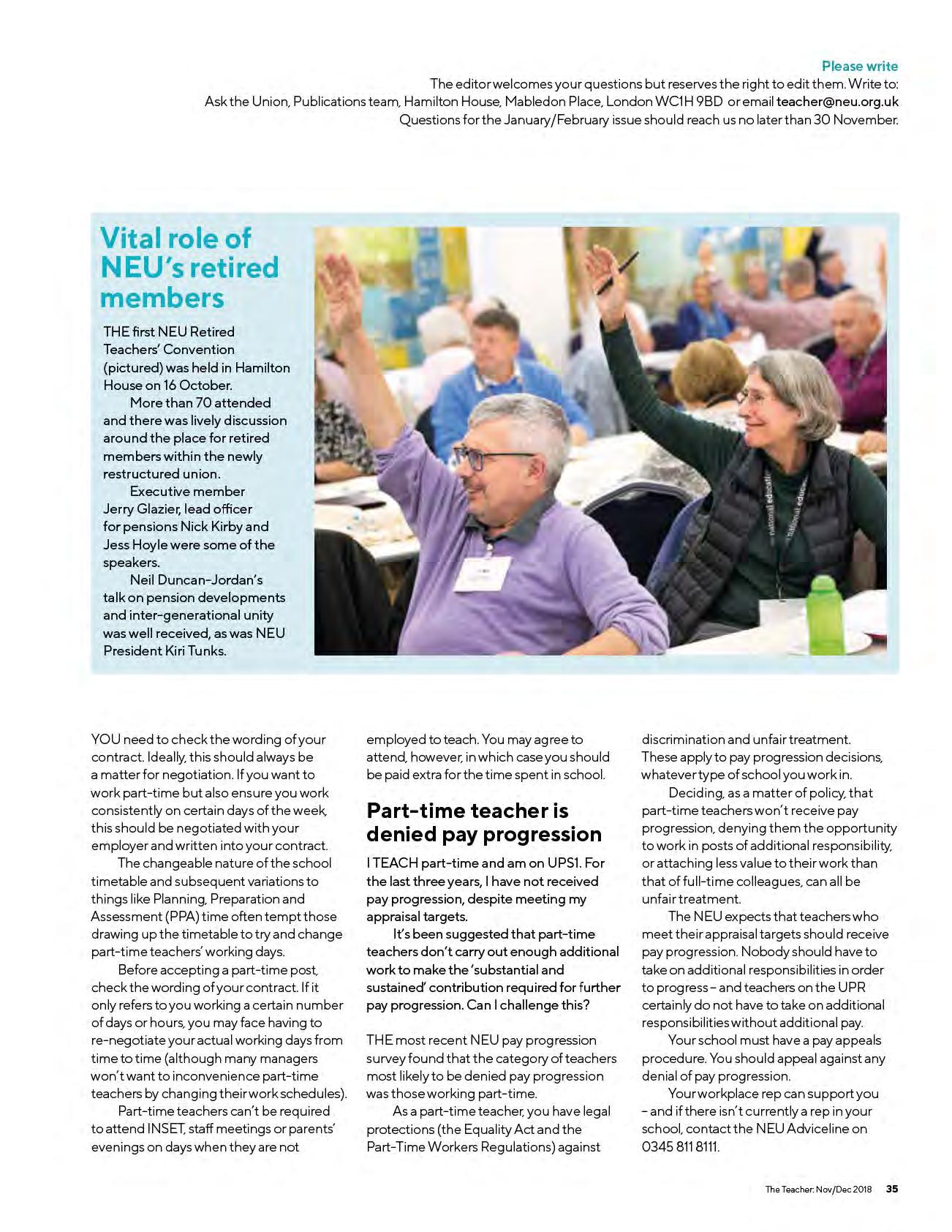 Retired members of the NEU will continue to play a vital role in much of the Union’s work. Retired membership is set at £20 per annum with no local fee payable.