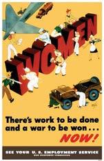 When the United States entered World War II, war production had to increase dramatically in a short amount of time. Women were needed because companies were signing large, lucrative contracts with the government just as all the men were leaving for the service. The government decided to launch a campaign to sell the importance of the war effort and to encourage women to join the workforce. They promoted the fictional character of “Rosie the Riveter” as the ideal woman worker: loyal, efficient, and patriotic.