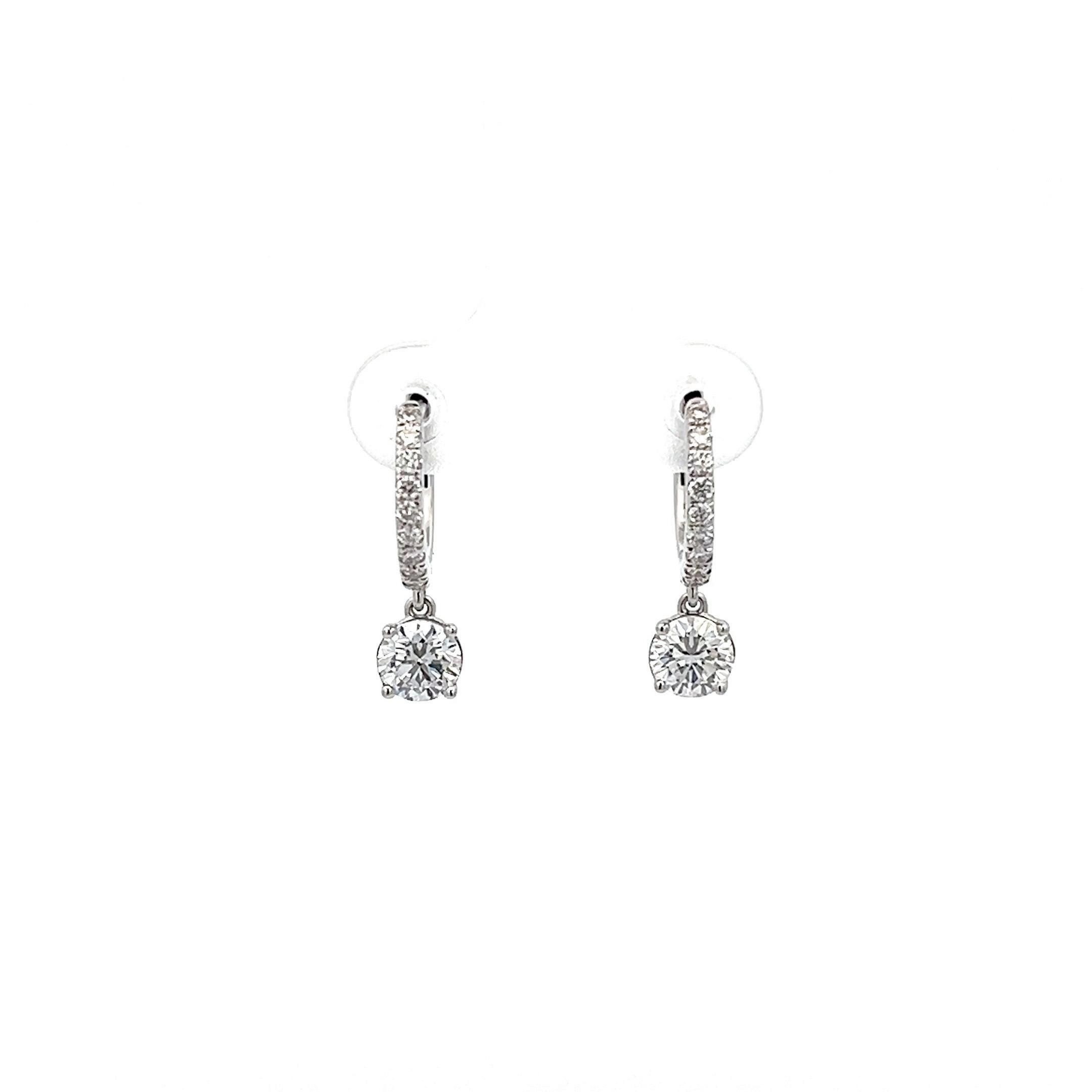 14k White Gold Drop Huggies TDW 1.30ct / Round Drops 0.50ct each was $980 now $686