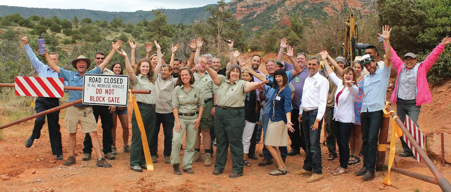NAFF has been working with ADEQ and Pink Jeep in Oak Creek Canyon on the Coconino National Forest since the first year of the fund, starting with the Oak Creek Erosion Control Project in 2015. Since then, we have grown the work in Oak Creek to a broad program of projects that control erosion, reduce sedimentation, encourage responsible recreation, and keep Oak Creek clean.