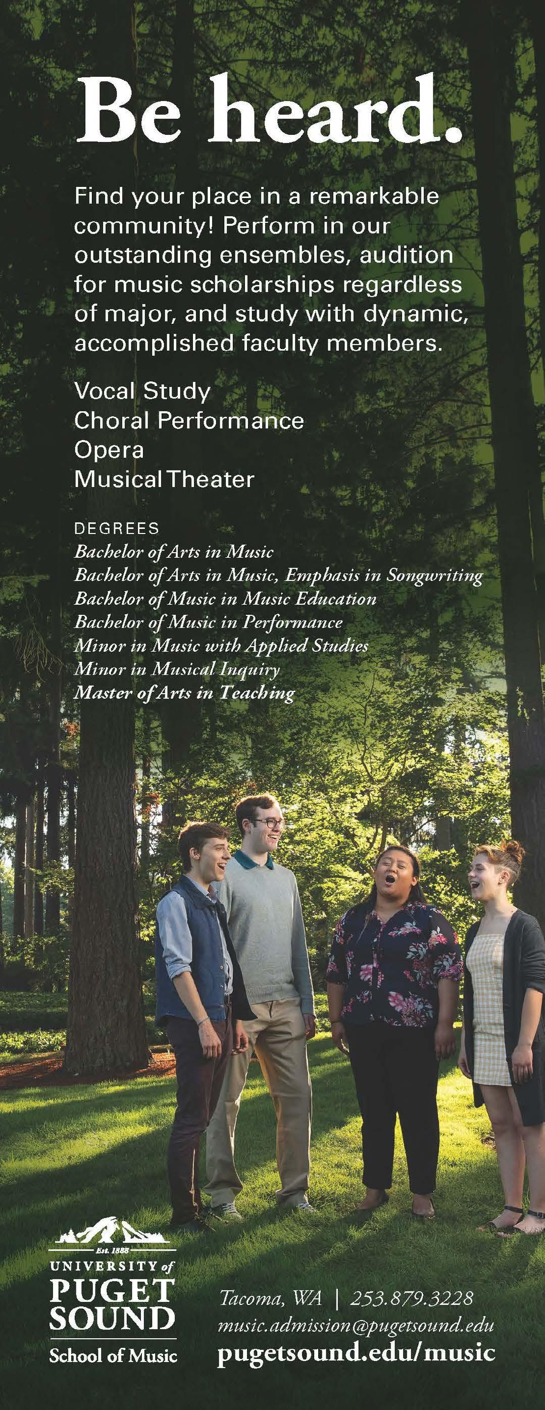 ♦ Explore opera, musical theatre, commercial music and new music repertoire