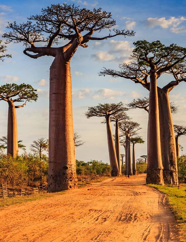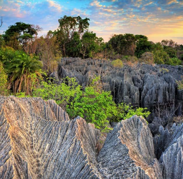 This bizarre, otherworldly landscape of arid thickets is dominated by droughtadapted plants like spiny octopus trees and barrel-shaped baobabs. Unique to Madagascar, the spiny forest is one of the world’s most distinctive dry ecosystems. Its highly specialized habitats support rare wildlife including ring-tailed lemurs and radiated tortoises—species increasingly at risk due to habitat loss and climate pressures in this fragile environment.