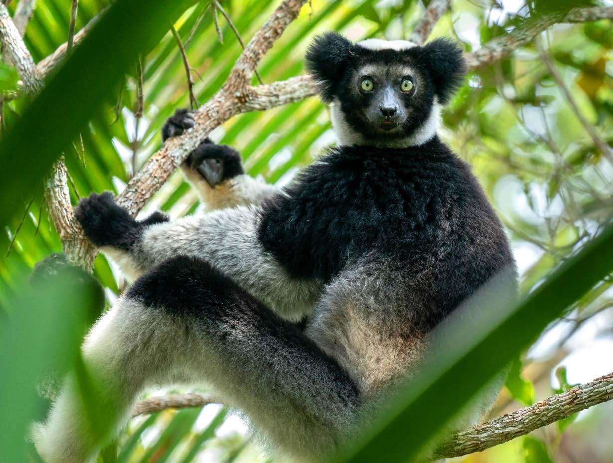 With its green eyes, black-and-white coat and upright posture, the indri is Madagascar’s largest lemur, weighing between 13 and 21 pounds. It is also the island’s most vocal lemur—its eerie, soaring calls can echo for more than a mile across the rainforest canopy. Indri live in small family groups in the island’s northeastern rainforests. Sadly, the indri is critically endangered, with estimates suggesting that fewer than 10,000 individuals remain in the wild due to habitat loss from slash-and-burn agriculture and illegal logging in Madagascar’s eastern rainforests.