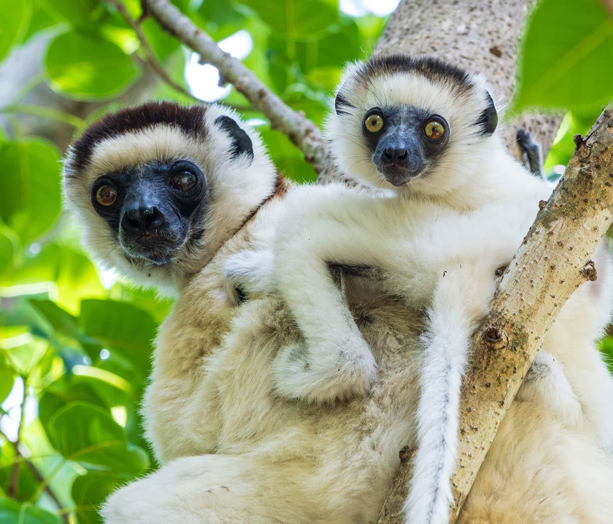 Verreaux’s sifakas—WWF supports community patrolling and education, resulting in growing lemur populations and reduced deforestation.