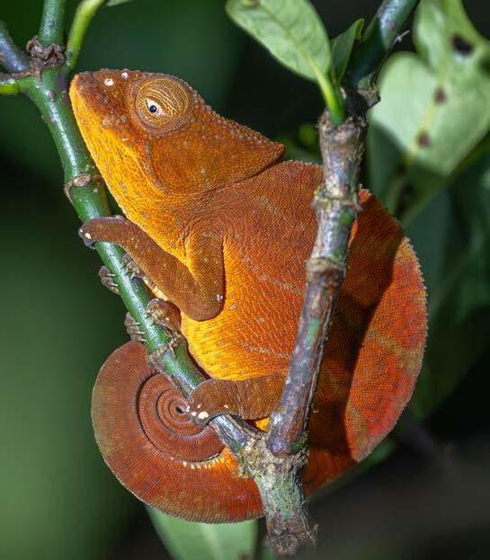 The ground boa is Madagascar’s largest native snake, typically reaching 6.5 feet and occasionally stretching up to 10 feet. With its rich pattern of reddish-brown, gray and black, it blends seamlessly into forest leaf-litter. A nocturnal ambush predator, it feeds on mammals—including lemurs— by constriction, underlining the island’s wild and unique ecosystem.