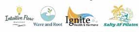 Among the featured practitioners are Salty AF Pilates with Kirissa Weyh, offering boutique Pilates infused with functional movement and energy work; Wave and Root Colon Hydrotherapy with Marea Celentano, providing gentle colon hydrotherapy detox services; The Dirty Esthetician with Julia Walker, specializing in low-tox skin care for sensitive and autoimmune conditions; Ignite Health and Hormone with Brianna Grundhoefer, focused on hormone balance and functional medicine; Sanford Pelvic Floor Therapy & Wellness with Christine Lamee, delivering trauma-informed pelvic care; Intuitive Flow Massage with Nyia Long, offering mindful bodywork; and Pure Performance Training with Tyrone Davis, providing elite-level athletic training.