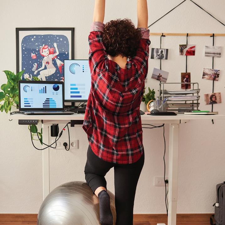 “Ergonomics is the design of working environments to help individuals use the best postures and habits that will keep their bodies healthy and avoid injuries,” Bissinger explains, noting that good posture is designed to maintain the inward curve of the lower back. To reduce the risk of carpal tunnel syndrome, pain on the pinkie-finger side of the wrist or other related injuries, she recommends keeping the shoulders relaxed, the wrist in a neutral position, the thumb in line with the forearm and elbows close to the body while typing.
