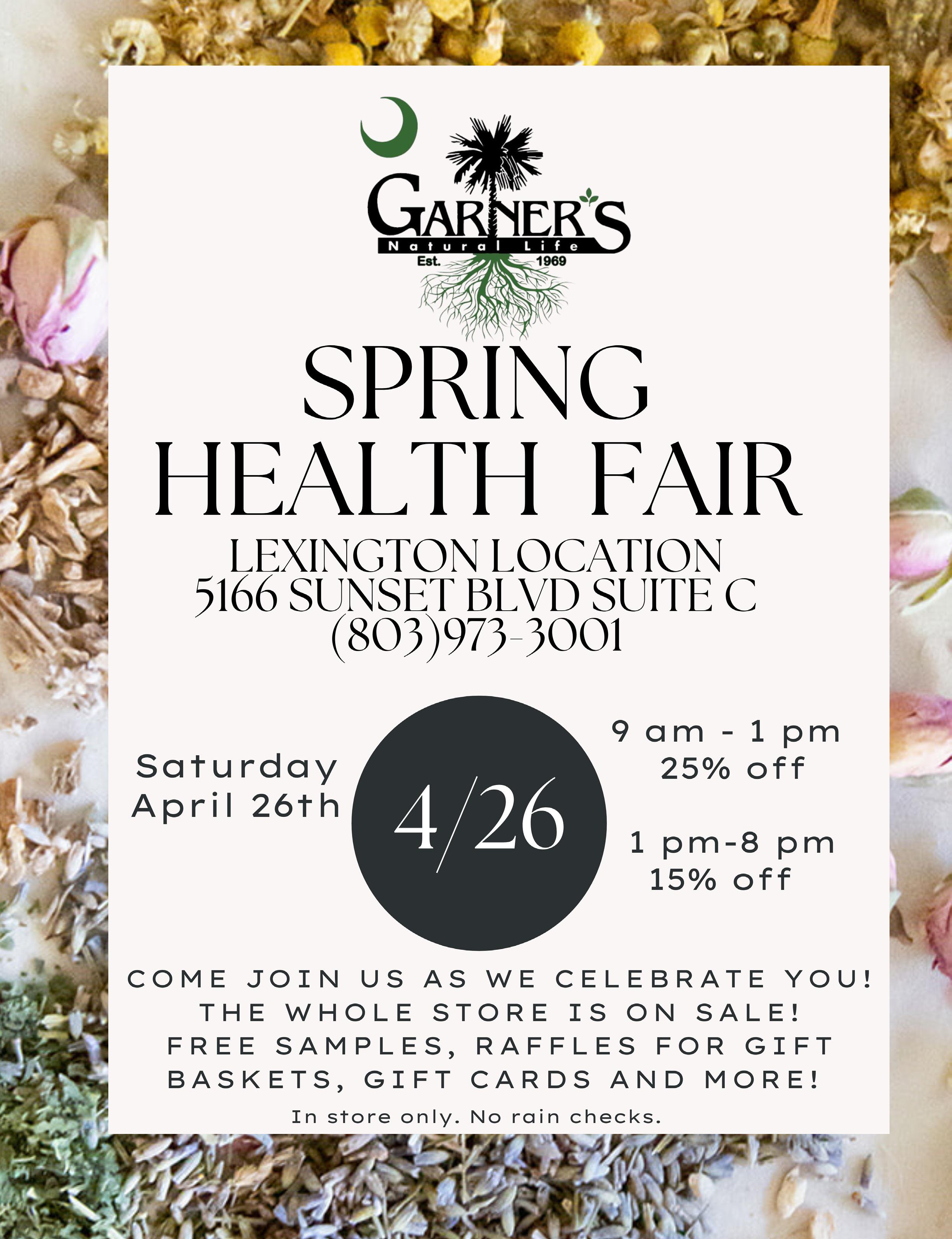4840 Forest Dr, Ste 15a, Columbia 803-454-7700 GarnersNaturalLife.com