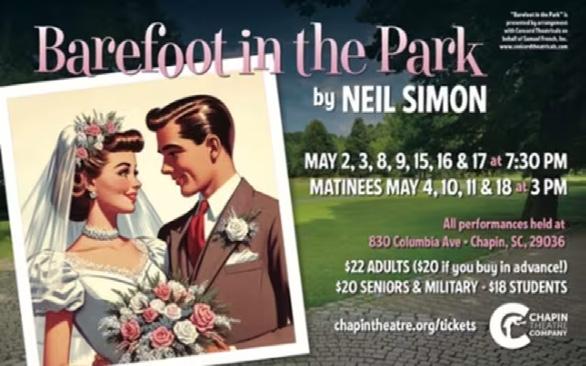 Cost: $20-$25. Location: 830 Columbia Ave., Chapin. For more information or to purchase tickets, call 803-404-0015 or visit ExperienceColumbiaSC.com/event/barefoot-in-the-park/72444.